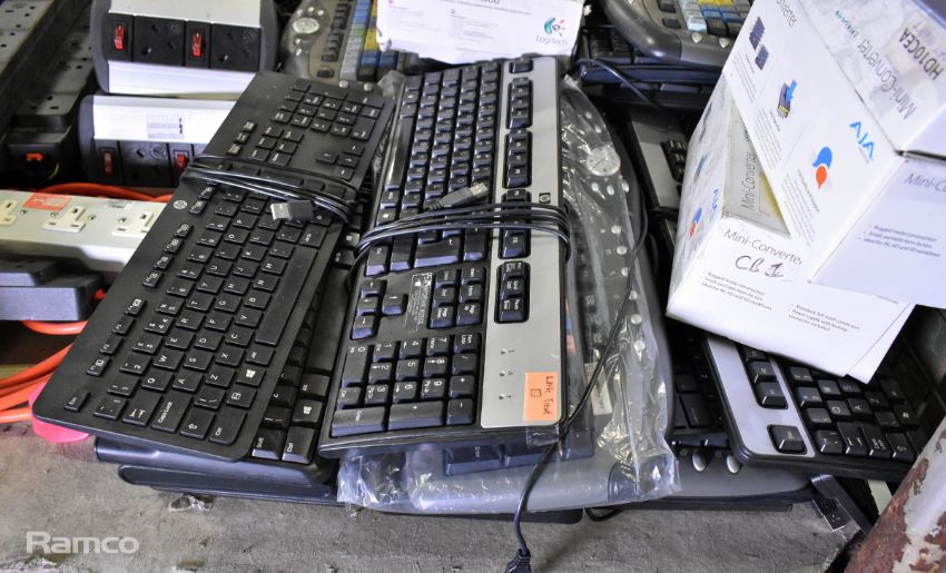 Collection of computer and power spares - approx. 40x keyboards, power sockets and more