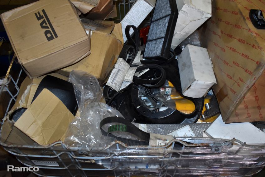 Mixed car and truck parts - filters, fuel pumps, lights, wing mirrors, belts and more