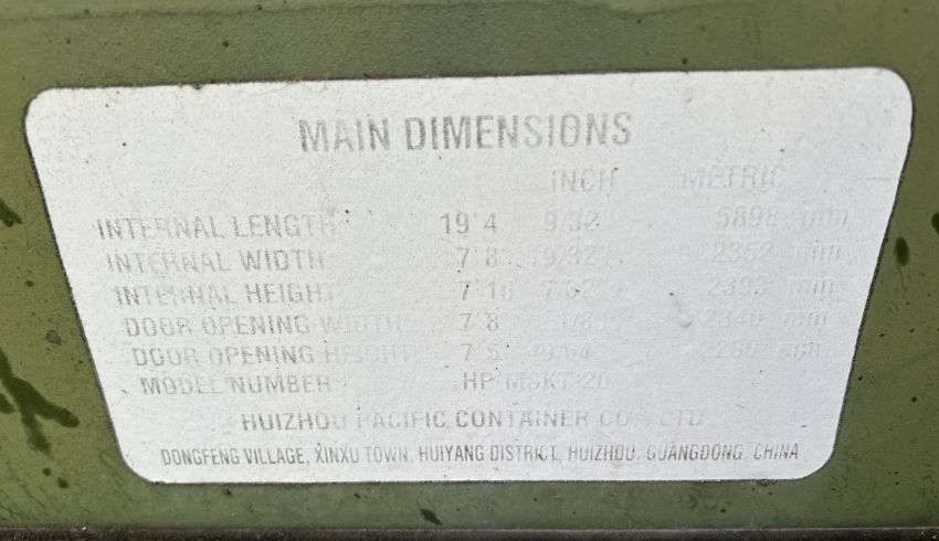 Shipping and storage container - L 20ft x W 8ft x H 8.5ft
