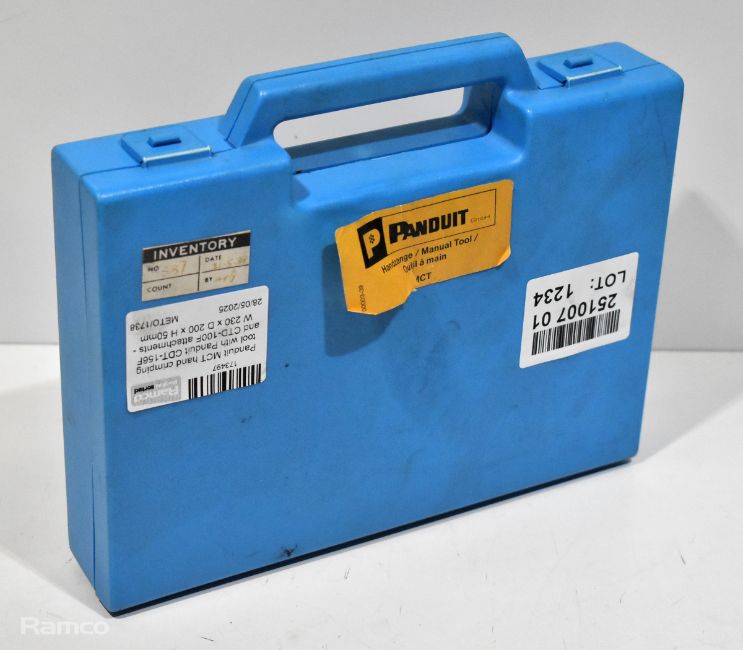 Panduit MCT hand crimping tool with Panduit CTD-156F and CTD-100F attachments - W 230 x D 200 x H 50mm
