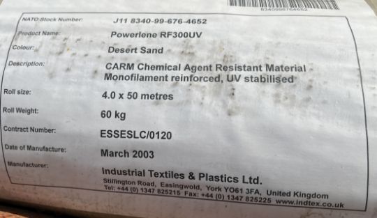 1x Roll of fibre reinforced tarpaulin - 4m wide x 50m long - 60kg - PLEASE NOTE -Quantity will be supplied of that in the listing - Stock images used, condition and design may slightly vary