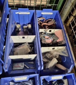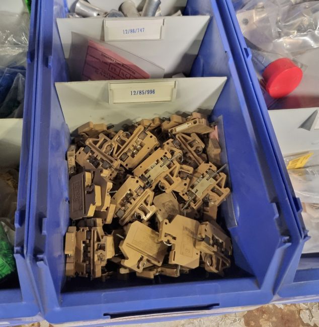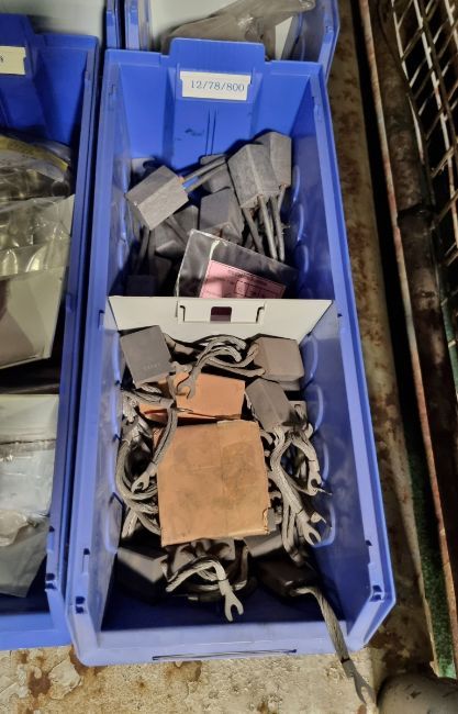 Mixed electrical components - carbon bushes, cable markers, tube terminal, capacitors, connector hood and more
