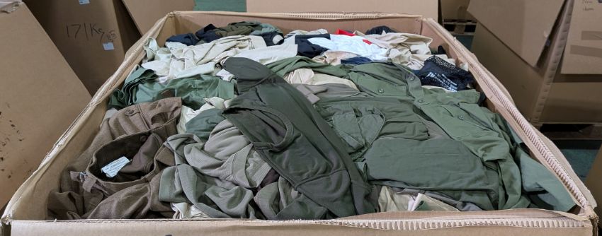 Various types of ex-military clothing - 152kg - may require repair or be as spares - see pictures for examples