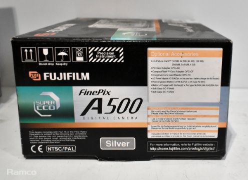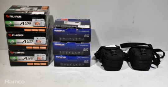 3x Fujifilm FinePix A500 digital cameras with accessories, 5x Olympus U Tough 8010 14 megapixel digital cameras (3x boxed, 2x in carry case)