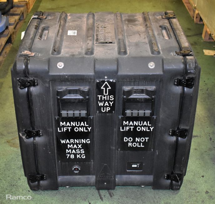 Amazon Cases plastic flight case with built in rackmounts - SOME LATCHES ARE DAMAGED - W 58 x D 740 x H 680mm - 32kg