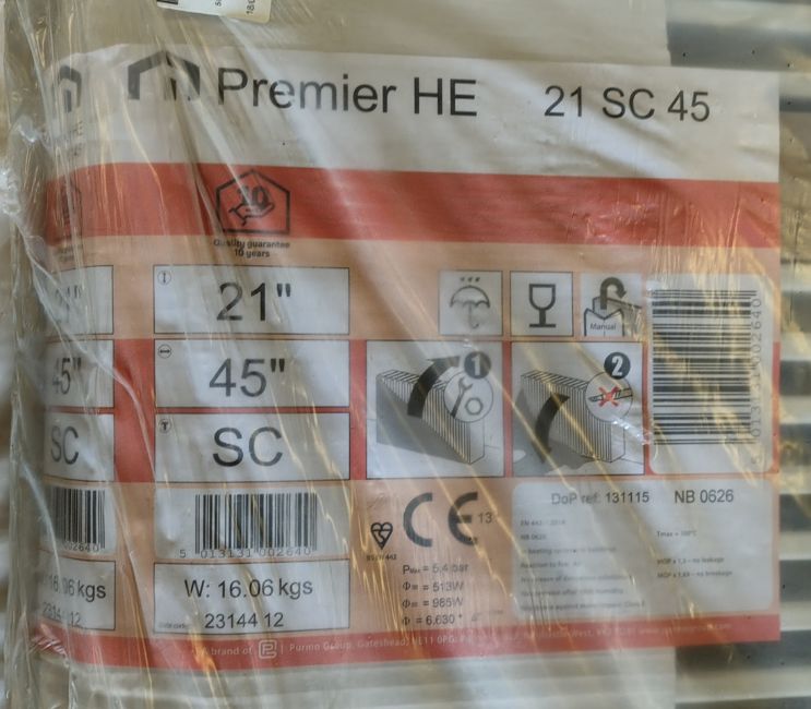 Premier HE single panel single convector radiator - W 1150 x H 530 x D 50mm