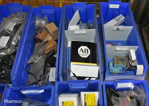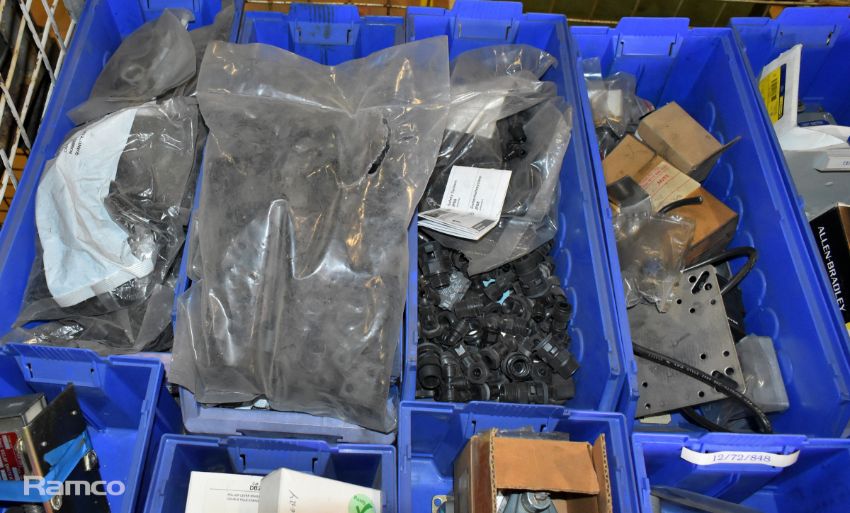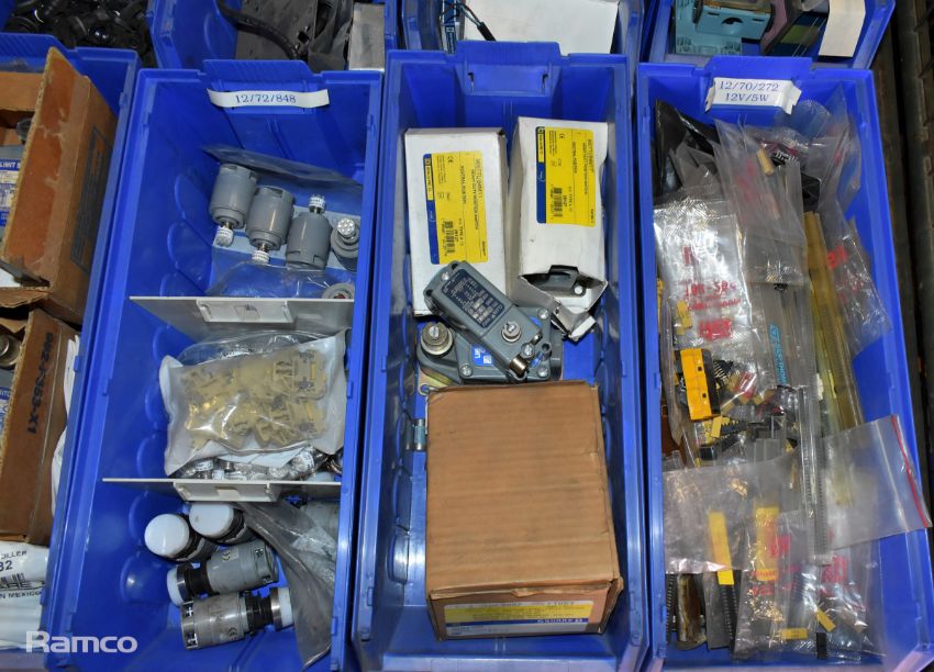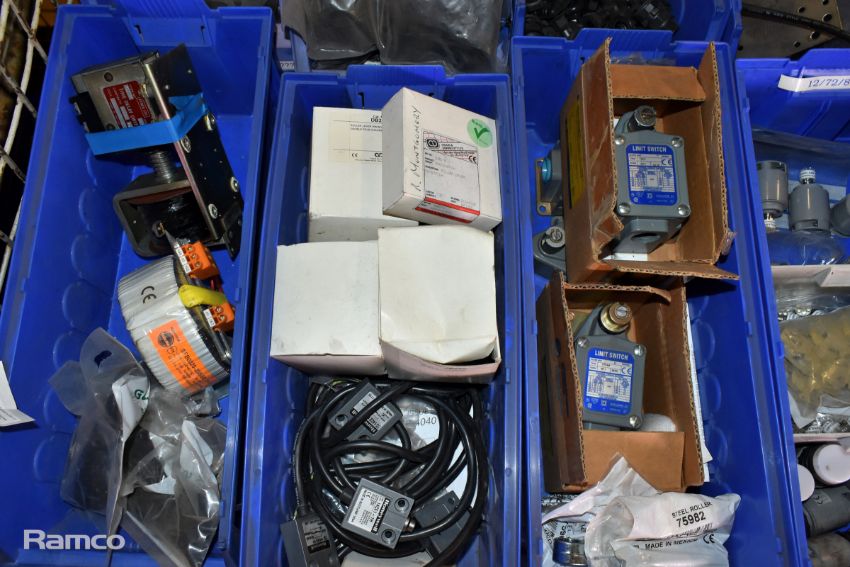 Mixed electrical components - Delay switch, plastic pipe clip, cable protection gland, micro switch, photoswitch, mini switch and more