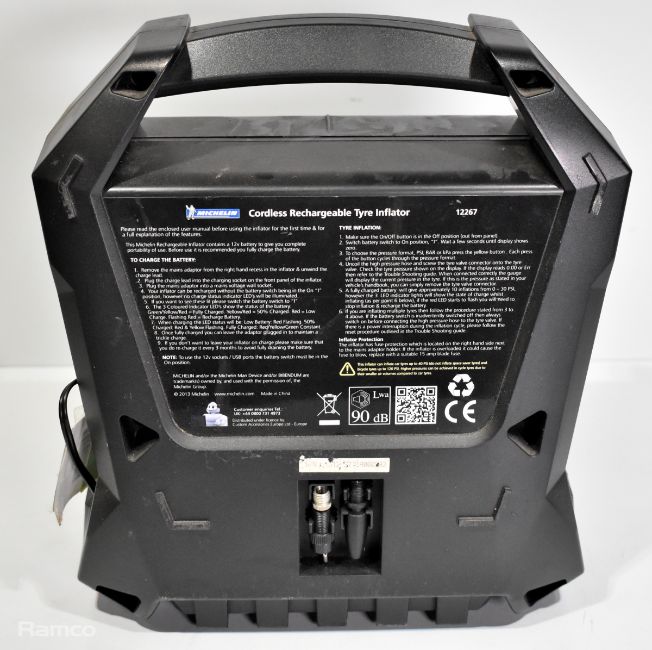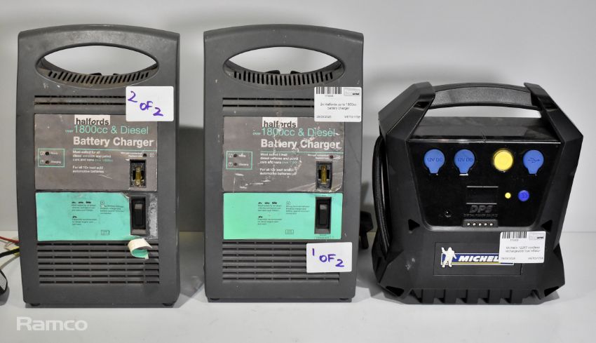 Michelin 12267 cordless rechargeable tyre inflator, 2x Halfords up to 1800cc battery charger