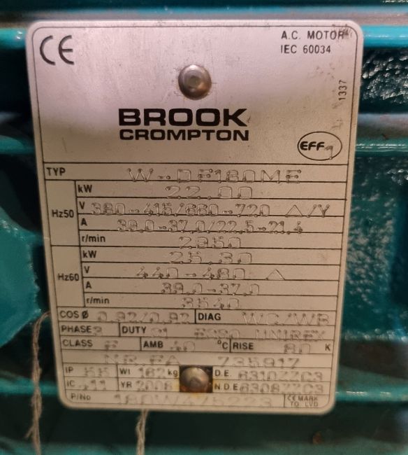 Brook Crompton W-DF180MF 3 phase electric motor - L 670 x W 460 x H 430mm - 170kg