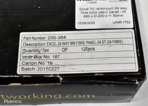 Excel 1U rackmount 24 way fibre optic patch panel - Boxed - W 480 x D 250 x H 30mm
