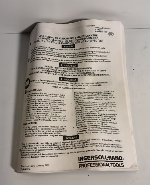 Ingersoll-Rand EL1007BC-SS-ESD 24V precision torque electric screwdriver - UNTESTED