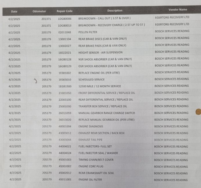 Major service @ @205179 miles – see photos.