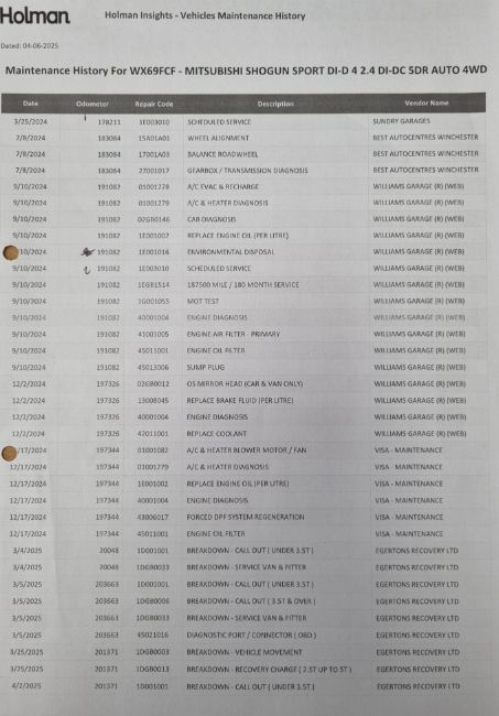 Fleet service history – see photos.