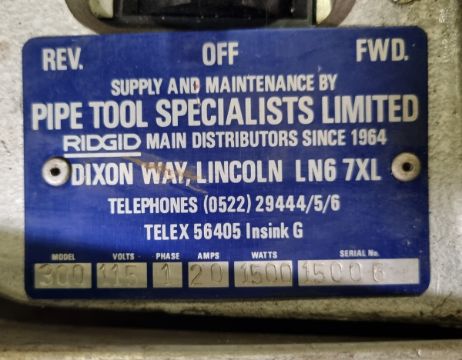 Ridgid 300 floor standing pipe threader - W 520 x D 800 x H 1430mm - 70kg