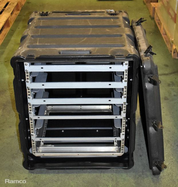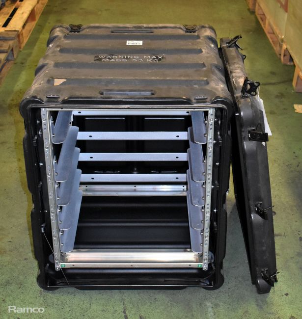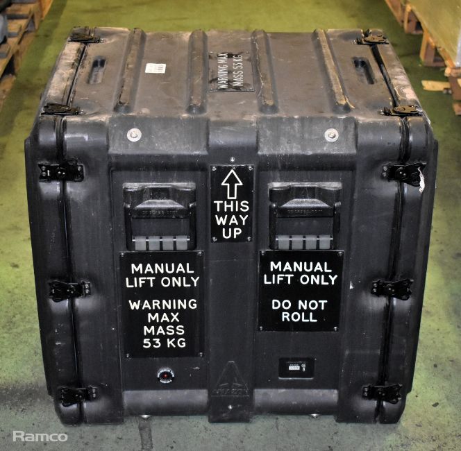 Amazon Cases plastic flight case with built in rackmounts - SOME LATCHES ARE DAMAGED - W 58 x D 740 x H 680mm - 27kg