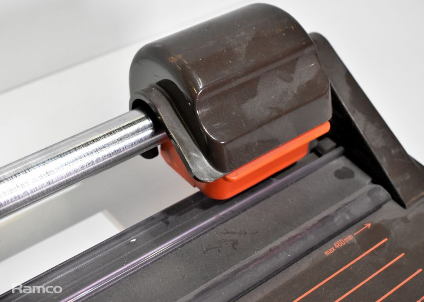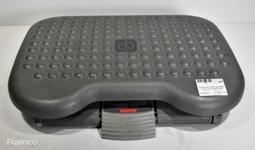 Rubbermaid height adjustable tilting under desk footrest, Myers 460 precision cutter - W 440 x D 360 x H 120mm - 5kg