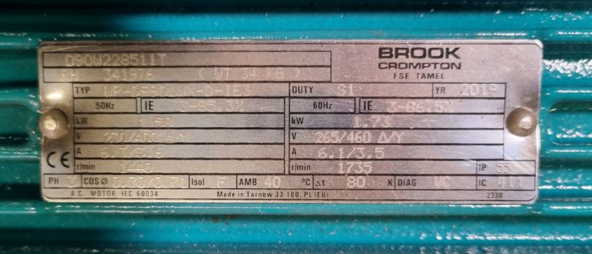 Brook Crompton WP-DF90LWX-D-IE3 1.5kW 3 phase electric motor - W 250 x D 390 x H 320mm - 34kg