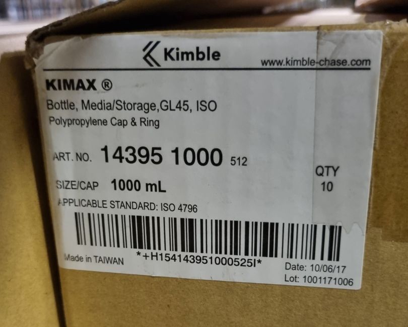 79x Kimax GL45 borosilicate media bottles - 1000ml
