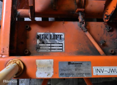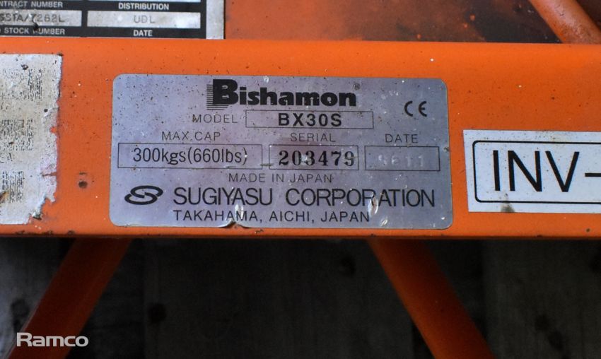 Bishamon BX30S double scissor mobile lift table - capacity: 300kg (660lbs)