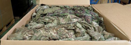 Various types of ex-military camo clothing - may include accessories - 279kg – may require repair