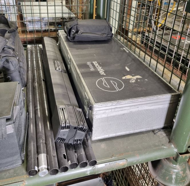 Equipment accessories - equipment storage cases / bags, pull up projector screen and poles