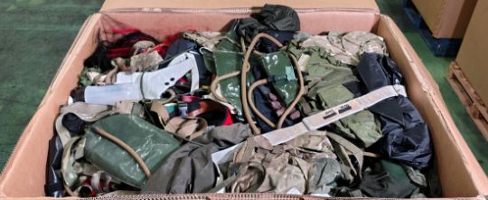 Various types of ex-military hardware and accessories - 160kg – may require repair / be incomplete - see pictures for examples